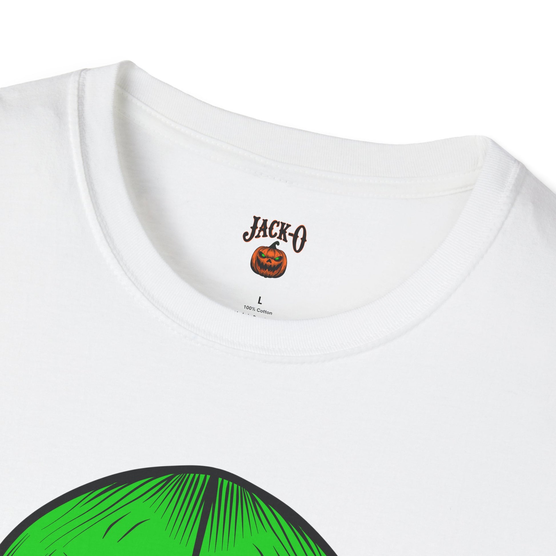 A trendy unisex T-shirt featuring a green neon skull with red eyes design. This shirt gives off a bold and edgy vibe, perfect for those who love alternative styles. Ideal for casual wear or to make a statement at music festivals, Halloween parties, or as a unique everyday piece for skull enthusiasts.